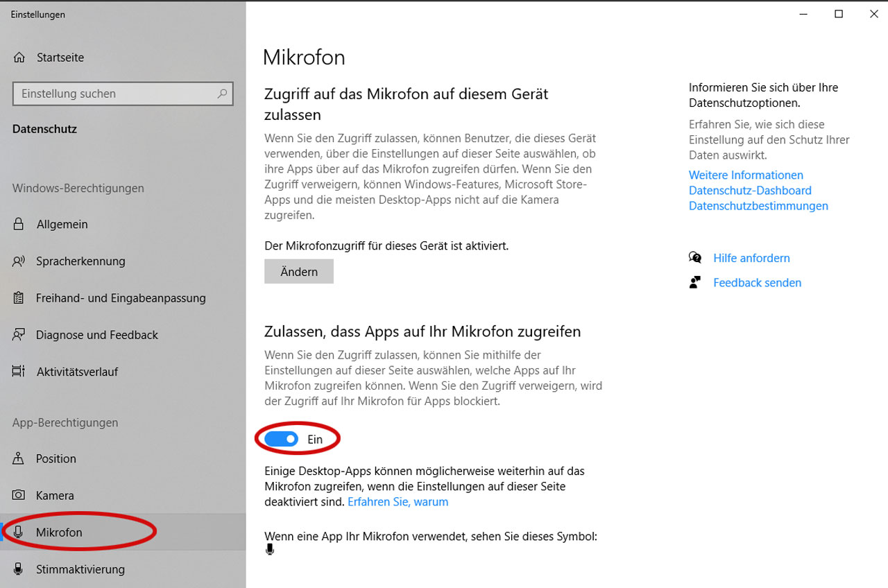 Im sich nun öffnenden Fenster klicken wir nun auf den Eintrag ‚Mikrofon‘ und lassen dann zu, dass Apps auf unser Mikrofon zugreifen.