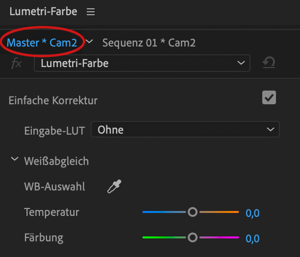 Dazu müssen wir vor der Farbkorrektur nur den entsprechenden Reiter im Lumetri-Panel auswählen: